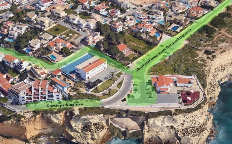 Generally, parking in Carvoeiro is free, making it convenient for visitors arriving by car. To make your arrival smoother, we have highlighted some of the most convenient parking spots in green on the map around Ocean View Terrace. These areas are easy to access and typically have available spaces, so you can find a place to park without hassle.
